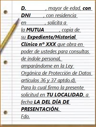 Para evitar malos entendidos posteriores, es preferible que la solicitud sea escritay no verbal. Un ejemplo de ello es la resolución que puedes leer a continuación. Resolución de la Agencia de Protección de Datos para el caso ante una mutua.